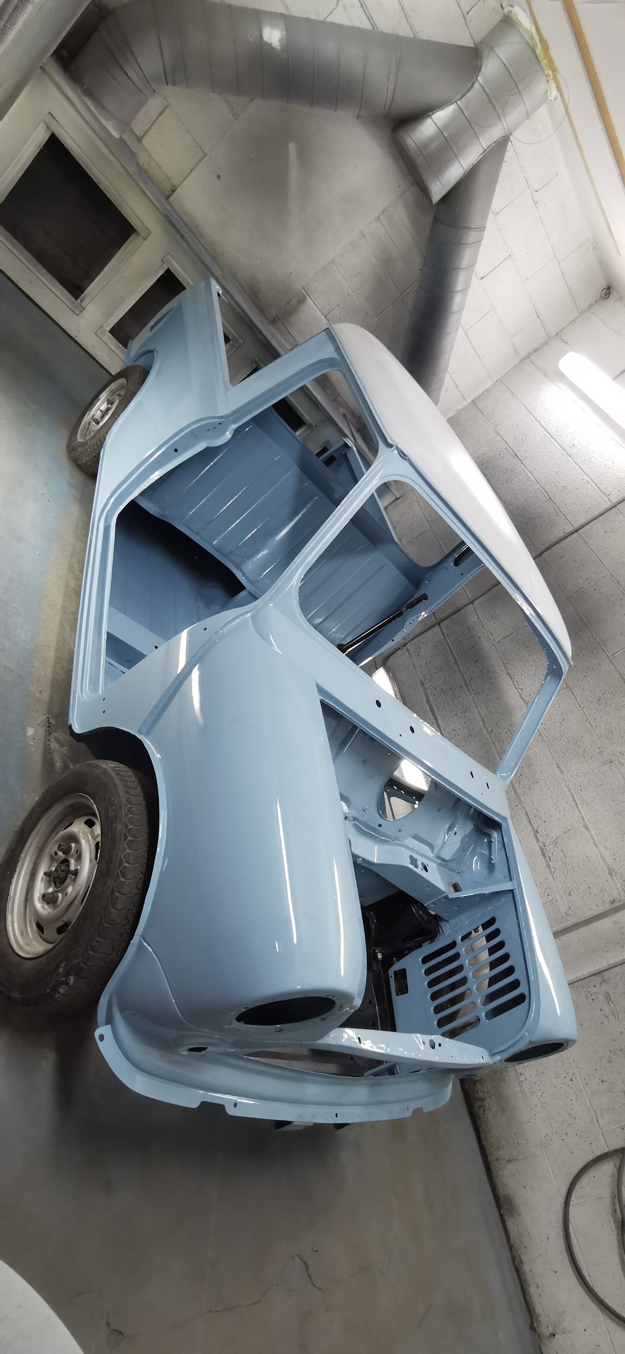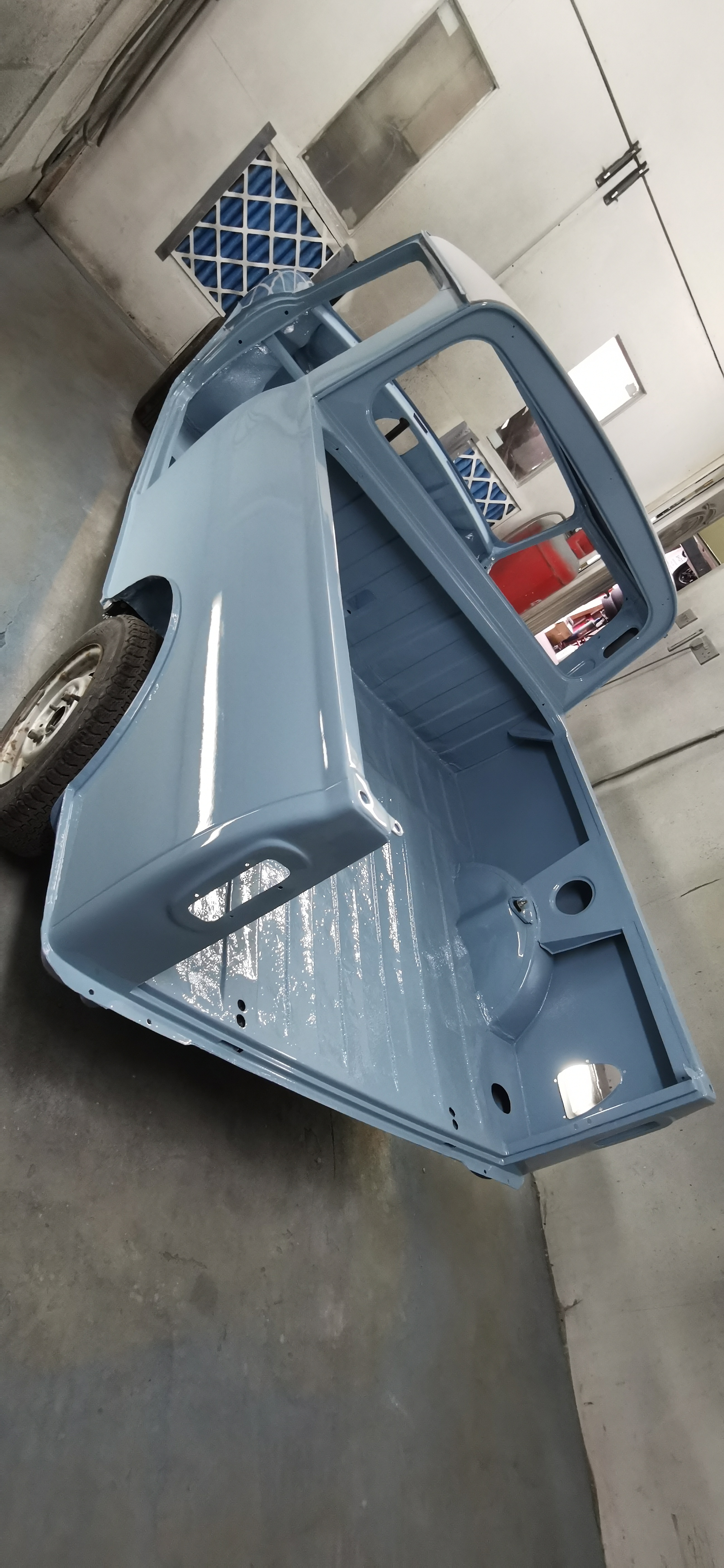 So we have some Speedwell Blue on the pick up. Just got to paint the roof Old English white now.
